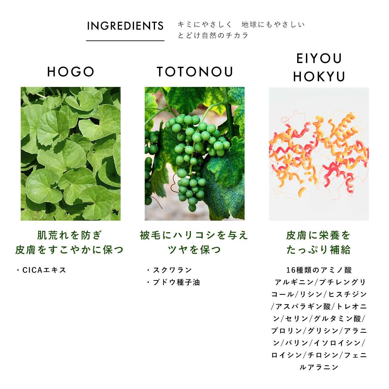 トリートメントは、そのすっぴん地肌・被毛に栄養をたっぷり補充。