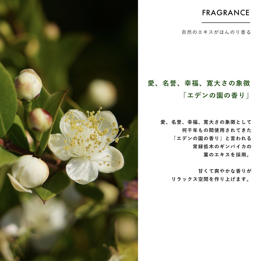 水、グリセリン、クエン酸、クエン酸Na、ヒドロキシエチルセルロース、ホホバ種子油、ブドウ種子油、センテラ・アジアチカ(CICA)エキス、ギンバイカ葉エキス、アミノ酸(アルギニン、ブチレングリコール、リシン、ヒスチジン、アスパラギン酸、トレオニン、セリン、グルタミン酸、プロリン、グリシン、アラニン、バリン、イソロイシン、ロイシン、チロシン、フェニルアラニン)